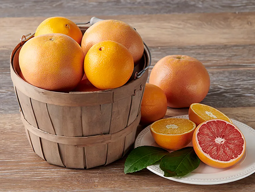 Send someone a basketful of happiness! These handsome reusable baskets are brimming with delicious Rio Ruby™ Red Grapefruit—so sweet they never need sugar—and juicy, sweet mouth-watering Navel Oranges. These are our two most popular citrus varieties, so they’re sure to please anyone on your gift list. Choose grapefruit, oranges or a mix of both to suit the tastes of your friends and family.