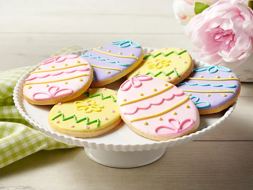 Here’s a truly special Easter gift for friends and family. Our exclusive hand-decorated Easter Egg Cookies are edible works of art, and you can’t find them anywhere but here! Light, tender, sweet melt-in-your mouth sugar cookies are presented in three lovely pastel icing colors and three intricate designs as pretty as a spring day.