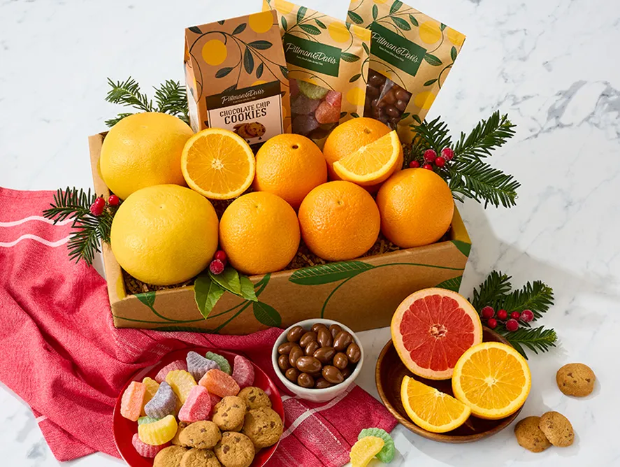 Our family loves the treats that come in this colorful gift box, and we're betting your family will, too. The star is our famous, grove-fresh winter citrus, Rio Ruby™ Red Grapefruit and Navel Oranges are the pride of our family-owned groves, where rich, fertile soil and generations of meticulous care consistently result in the most succulent, flavorful fruit ever to grace your table.