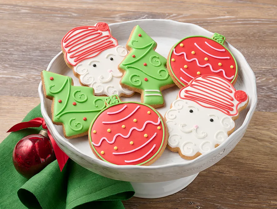 Can it be Christmas without Christmas cookies? If you can bring yourself to share them, our exclusive Hand-Decorated Christmas Cookies are a great way to impress Santa on Christmas Eve! Bakery-fresh, melt-in-your-mouth traditional sugar cookies are carefully cut out in Santa, Ornament and Christmas Tree shapes (two of each), then intricately decorated by hand in holiday colors of red, green and white. Almost too pretty to eat (but you won’t be able to help yourself)!