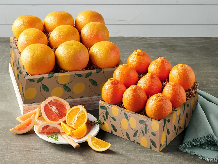 Two of our most popular citrus fruits come together in one delightful gift! Sought-after Honeybells are easy to peel, full of juice, with a sun-sweet flavor you can't find in other varieties. They are only available in a single, limited harvest. We pair them with our sugar-sweet, seedless Rio Ruby™ Red Grapefruit so you have quality citrus to enjoy from breakfast to snack time and beyond. Two gift sizes available to suit any family.