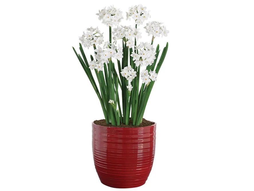 Need an easy gift idea? Send flowers! These festive Paperwhite bulbs grow incredibly fast - indoors! Part of the Daffodil family, A multitude of bright, sunny white flowers will burst forth within 4-6 weeks and the show will last for weeks. Paperwhites are pretty to look at but are also known for their wonderful fragrance—a gift in itself! With proper care, they will bloom again, year after year.