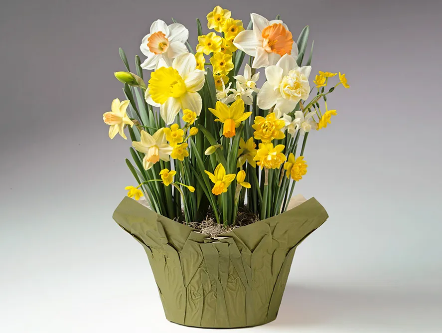 "One daffodil is worth a thousand pleasures," according to William Wordsworth – which means this gift bulb garden has no less than 8,000 pleasures! Our grower's pot comes pre-planted with eight, easy-tend daffodil bulb varieties – just add water, wait a few weeks, and watch these trumpets of spring erupt in sunshiny hues of yellow, white and orange.