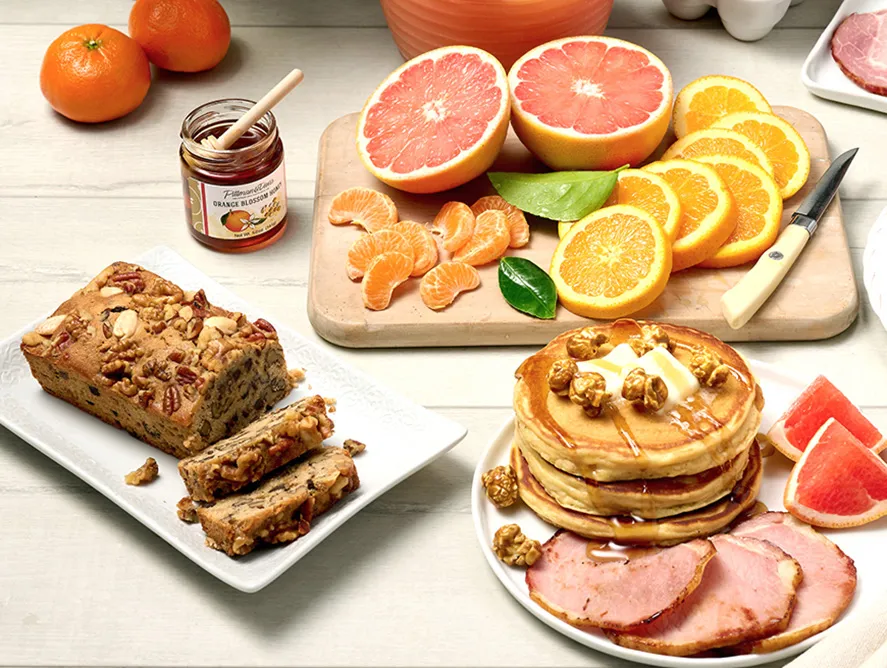 Family, friends and associates will love this rich, nutty cake. The buttery, caramel-flavored cake batter is positively bursting with crunchy pecans, walnuts, almonds and mini-chocolate chips. Each rich bite is an explosion of distinctly sweet flavors and textures that are truly irresistible, whether served at breakfast or dessert. This cake was a favorite at our photo shoot, and disappeared in a flash!